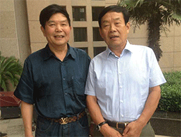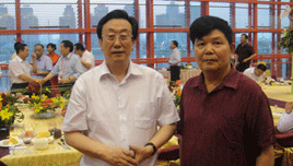 浙江天臺山梅氏宗譜 中國抗癌協(xié)會常務(wù)理事、河南省抗癌協(xié)會會長楊文獻(xiàn)教授和《百花散》傳人梅先生合影